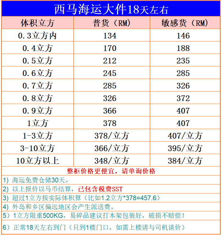 * 默认体积重与实重比较,取较重者计算运费,免抛/半抛优惠请参考报价说明。